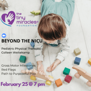 Join The Tiny Miracles Foundation and Pediatric Physical Therapist, Colleen Weitekamp, MSPT, PCS on Zoom for our next After the NICU Education Series.