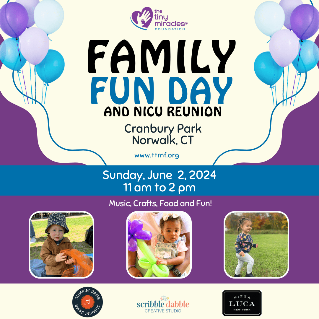Sunday, June 2 11AM to 2PM Cranbury Park Pavilion in Norwalk Join the Tiny Miracles family as we celebrate our annual Family Fun Day. Reconnect with Tiny Miracles mentors and staff, meet new families of premature babies in your community. Your immediate family is invited for a day of music, crafts, food and fun. RSVP […]