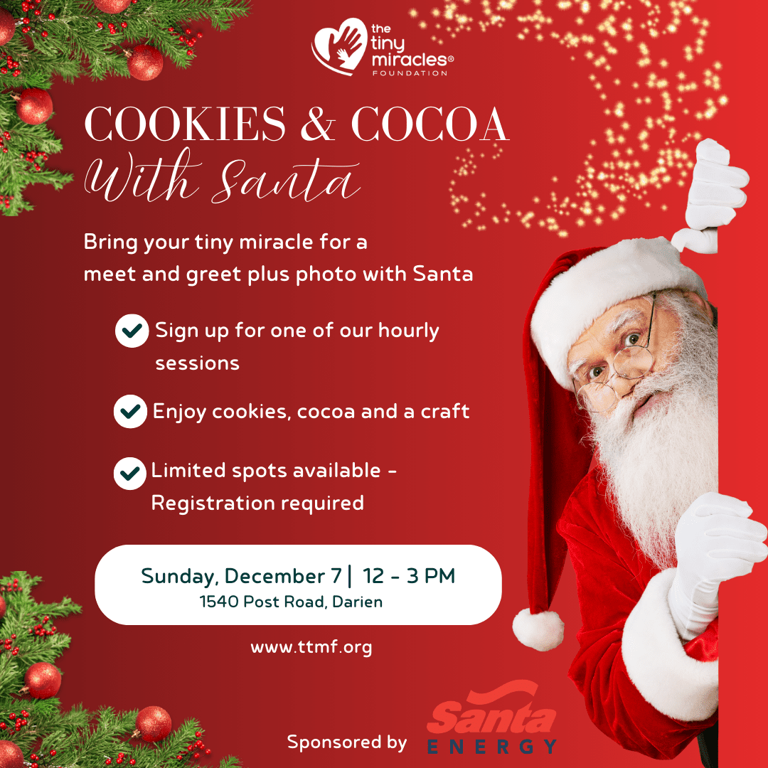 Sign up to bring your tiny miracle for a Meet & Greet plus PHOTO with Santa. Celebrate the holidays with your Tiny Miracles family and enjoy cookies, cocoa and a craft at our Darien office. Hour long slots available Here: https://www.signupgenius.com/go/30E0C45ABA72FABFA7-59989136-cookies#/ SPOTS FULL -- JOIN THE WAITING LIST *** SUNDAY, DECEMBER 7 12 to […]