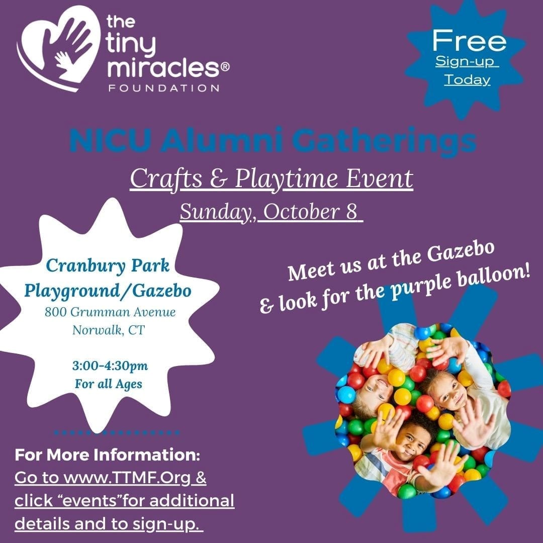 Thursday, November 9 7:00 PM Two Roads Brewery 1700 Stratford Ave, Stratford All NICU moms, past and present, welcome Look for your host in the Tiny Miracles vest.
